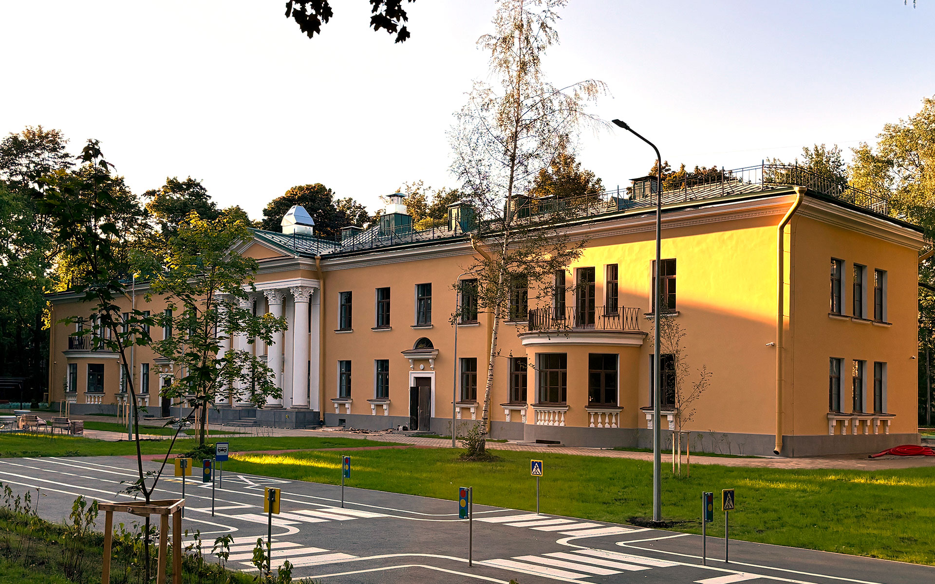 При этом мы реализуем нетиповые проекты: наши садики и школы зачастую отличает оригинальная архитектура, смелые решения с точки зрения наполнения учебных пространств – можно вспомнить зимний сад или винтовую лестницу в библиотеке школы №55, потолки высотой от 4,5 до 6 метров в детском садике №18, четырехколонный портик в духе «советского классицизма» в детском саду №123.