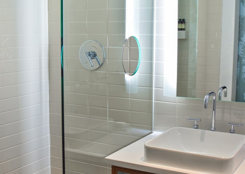Обратите внимание на освещение: оно должно быть мягким, но в то же время достаточно ярким. Кроме потолочного освещения предусмотрите дополнительный источник света в зоне зеркал: так уходовые процедуры и макияж будут ещё приятнее. Подсветка для шкафчиков тоже сделает вашу жизнь комфортнее, а пространство стильным.