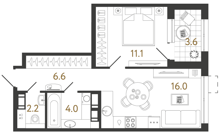 1-комнатные квартиры с большой кухней