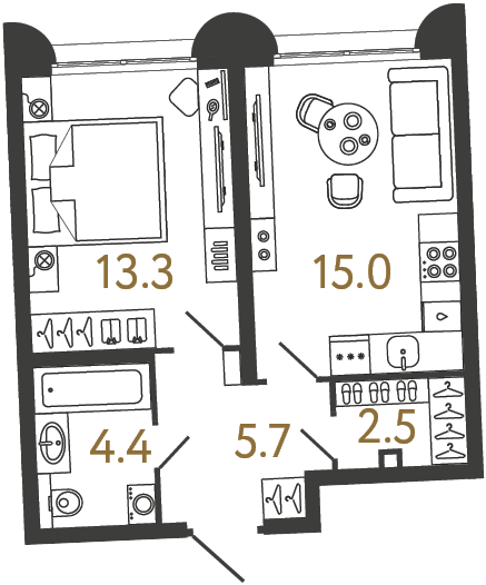 Малоэтажный загородный дом состоит из 94 квартир большой площади - от 24 до 111 кв.м. В квартирах с удобным зонированием, большими кухнями-гостиными, мастер-спальнями и террасами комфортно жить сразу нескольким поколениям. На территории приватного парка каждый житель найдёт для себя занятие по душе: дети могут играть на детской площадке от немецкого производителя, а родители - отдыхать беседке-перголе или в уличном амфитеатре.