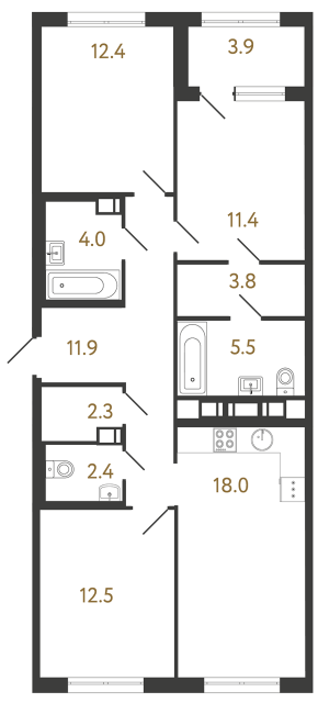 Трёхкомнатная квартира №175 в ЖК Струны - 84.2 м²